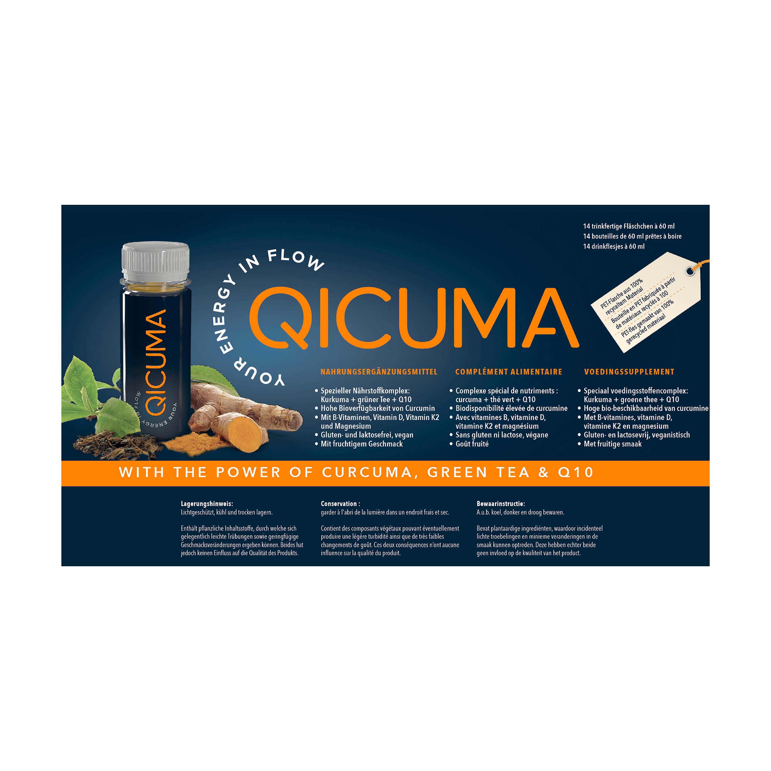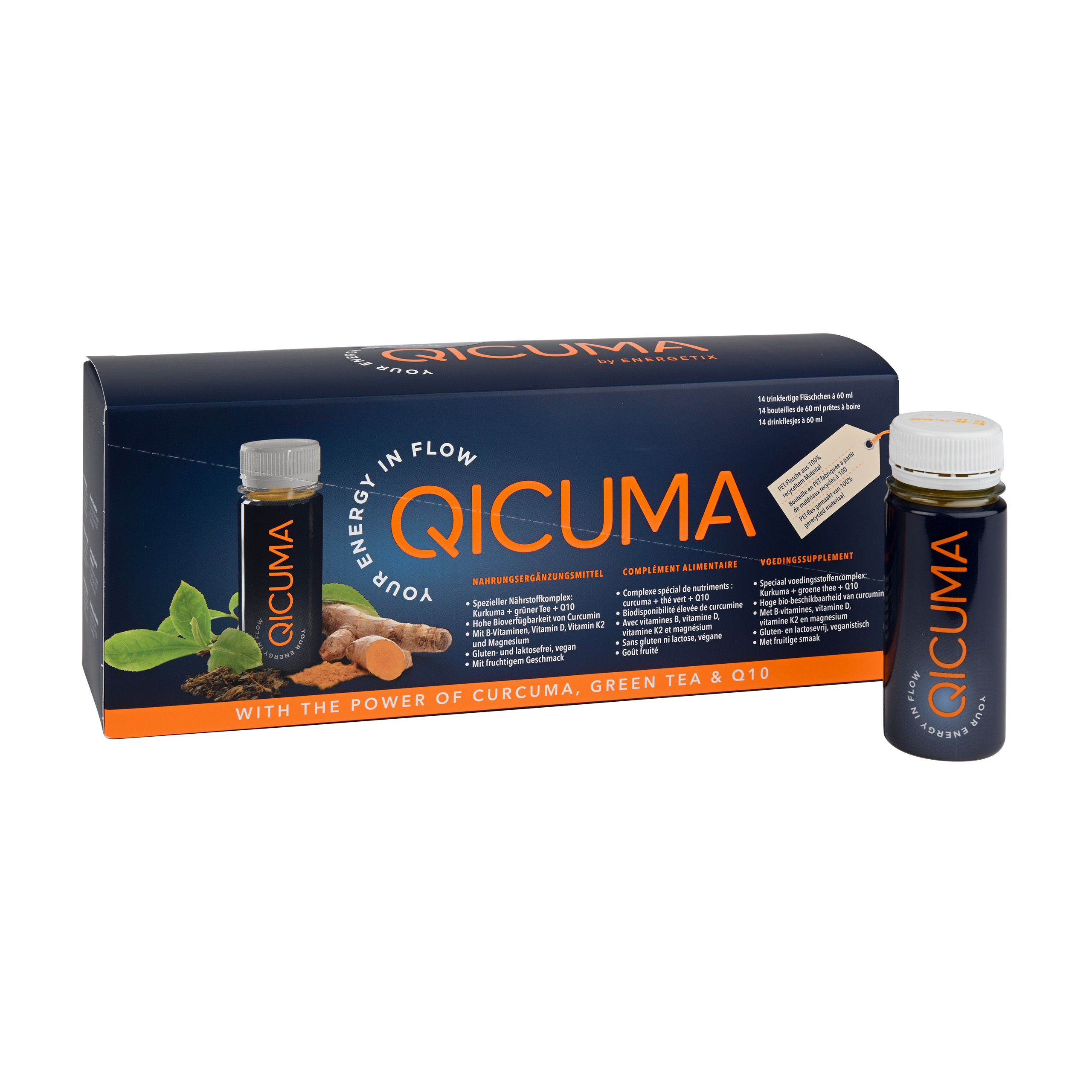 QICUMA ist die exklusiv entwickelte Ergänzung zu deiner Ernährung: ein flüssiger Mikronährstoff-Komplex aus Kurkuma, grünem Tee und Q10. Mit nur einer Portion QICUMA am Tag ist es ganz leicht, deine persönliche Ernährung optimal zu unterstützen. Ob als Einzelkauf zum Probieren oder als monatliches, praktisches Abo – wir senden dir dein QICUMA bequem nach Hause.